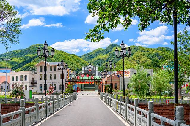 我们此行的第一个地方是六安情峡,也是和我的小伙伴汇合的地方。为什么选择这里?因为这是一座新的景区,我来霍山大概有四、五次了,这座新景区还是第一次听说。这次来,主要体验的是六万情峡电影小镇以及观看了《大别山传奇》抗战实景剧。