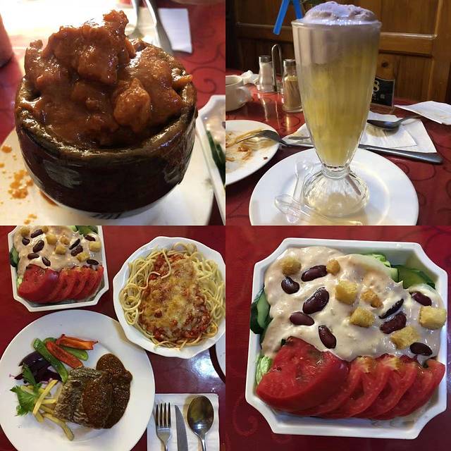 胡椒牛排、焖罐牛肉、奶油鸡茸汤、素菜沙拉、土豆沙拉、意面、冰激凌三德。 味道最好的是焖罐牛肉和土豆沙拉。