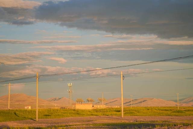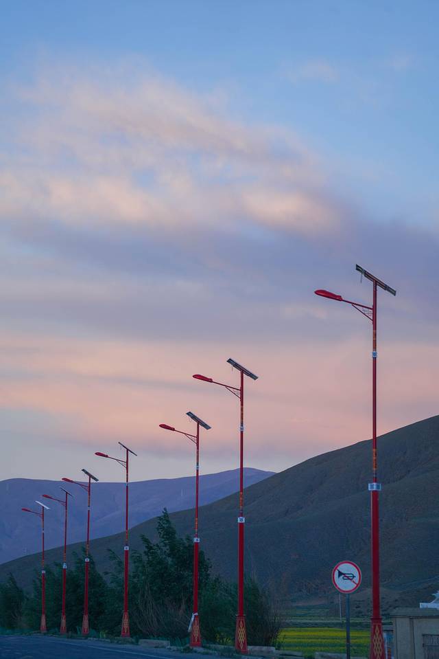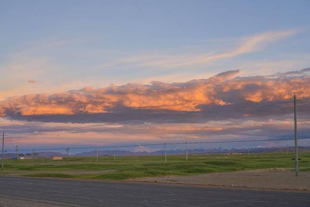 西藏的风景在路上,不需要刻意去一些景点就能收获 一番美景。因为车里的小伙伴需要在这里做抗原等半小时,正值日落时分,我们又遇见了温柔的西藏。