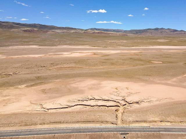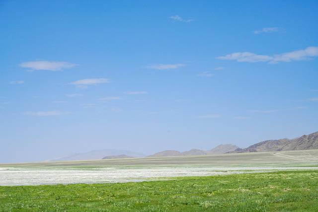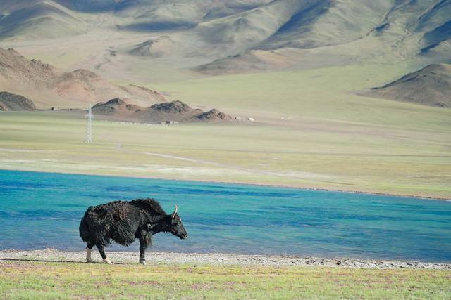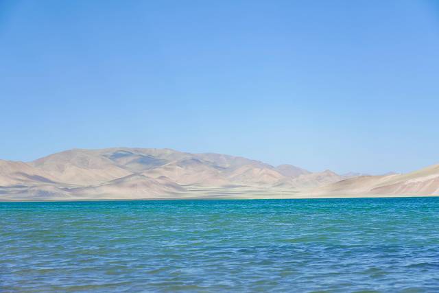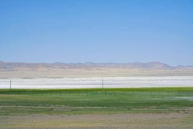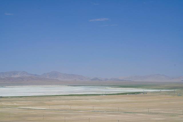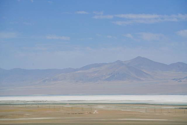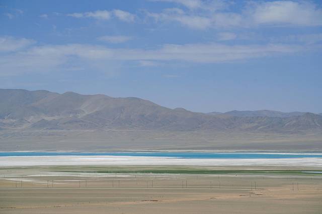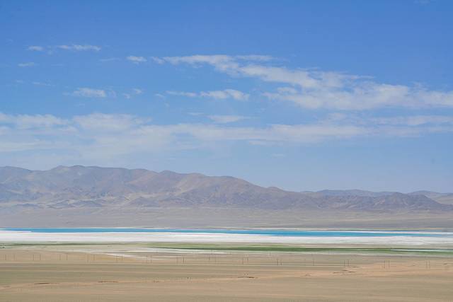 从狮泉河到改则,中间会经过革吉县的盐湖乡,登上观景台,便能看到与之前不同的湖水。