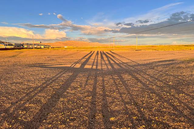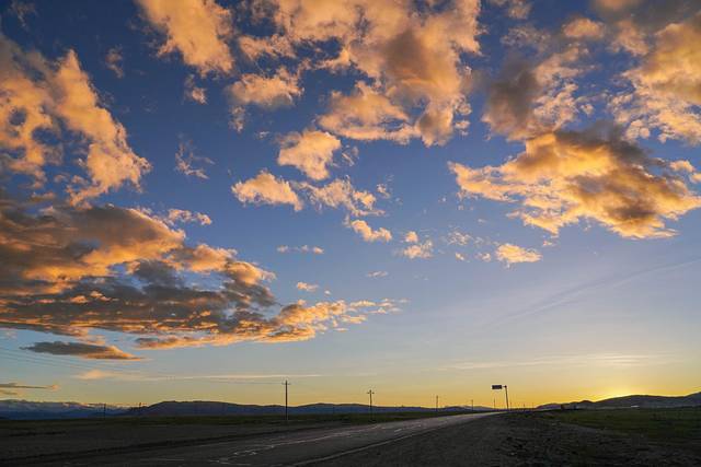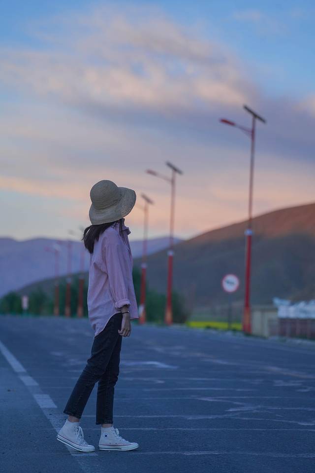 傍晚的天空总是好看的,趁着师傅要休息20分钟的间隙,我们再一次狂按着快门。即使在公路上,我们也要留下照片,不过在公路上拍照一定要注意双向的车辆哦,安全才是第一。
