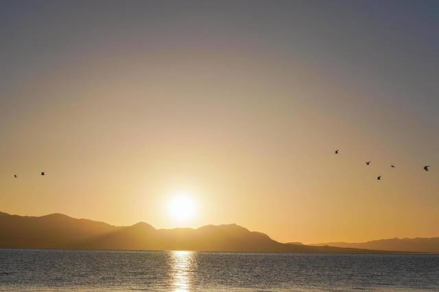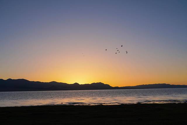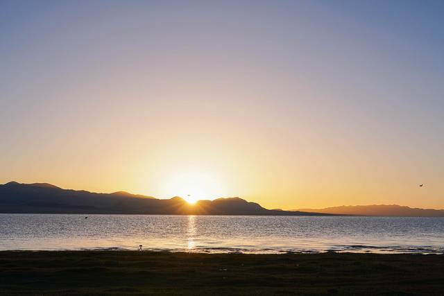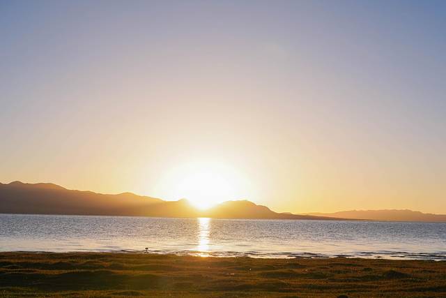 高原的湖边日出,我还是第一次看,架好三脚架,调好相机参数,我一边跺着脚一边等待着日出。慢慢的,太阳跃过了山顶,天空也亮了许多,湖边被染上了一层金黄色,阳光打在身上,又温暖又柔和。