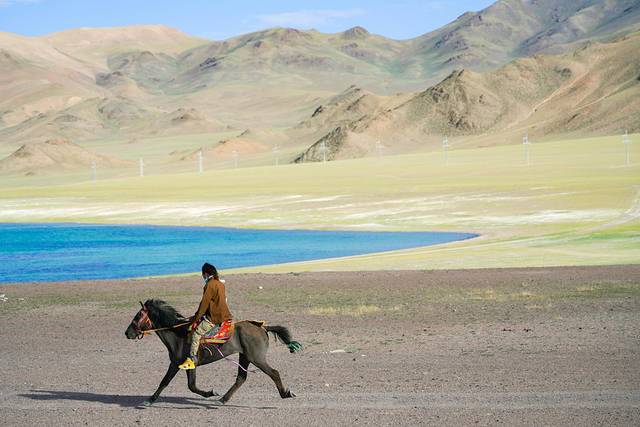 从盐湖乡出来,我们又开始了一错再错。好像临近赛马节,所以一路上都能看到在为赛马节做准备的当地人,他们在湖边自由骑马,好似一幅画一般。只可惜,我们到的时候,他们已经练完准备回家了。