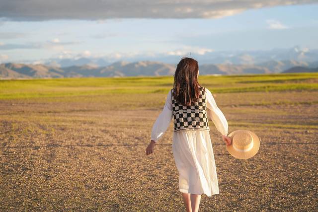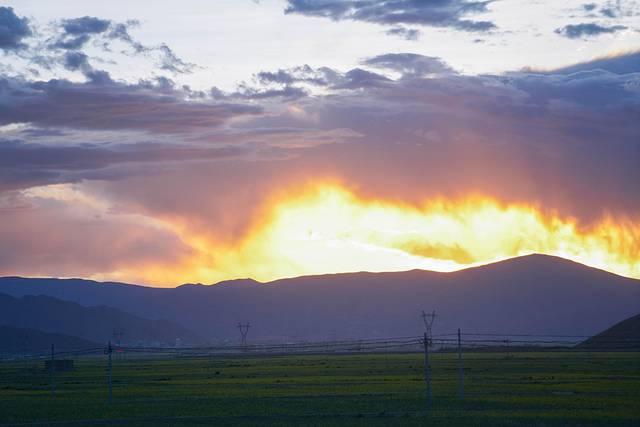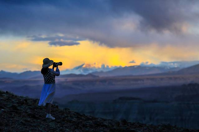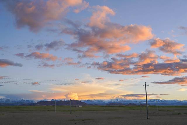 西藏的风景壮阔,但在绝美的日落下也有温柔的浪漫时刻。
