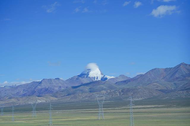 从塔尔钦去玛旁雍错的路程并不远,大概半小时就能到达,冈仁波齐峰一直伴随着我们。