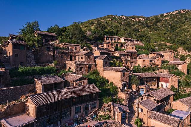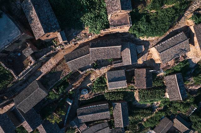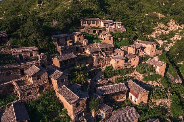 这种风格独特的立体式乡土建筑,完整保留了太行山区古老的传统与民俗,整个村庄围合封闭,附阴抱阳,藏风聚气,充分体现了天人合一的自然格局。我在村口升起无人机,借助航拍视角,整个村落建筑群和周围的山势尽收眼底,的确有几分布达拉宫的磅礴气势。