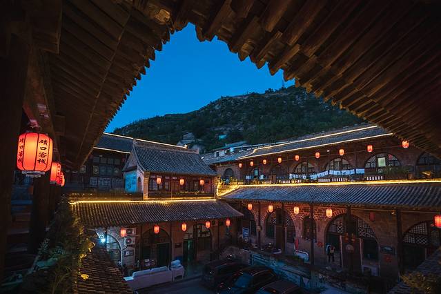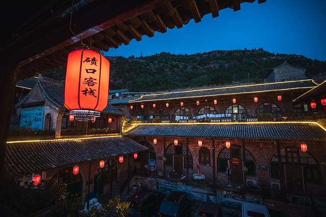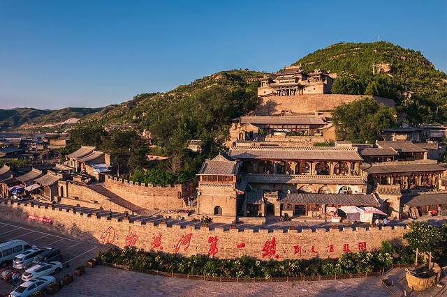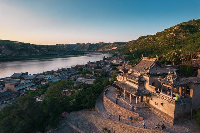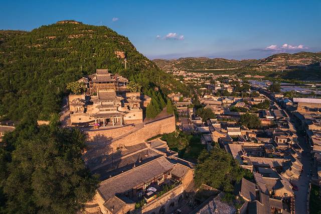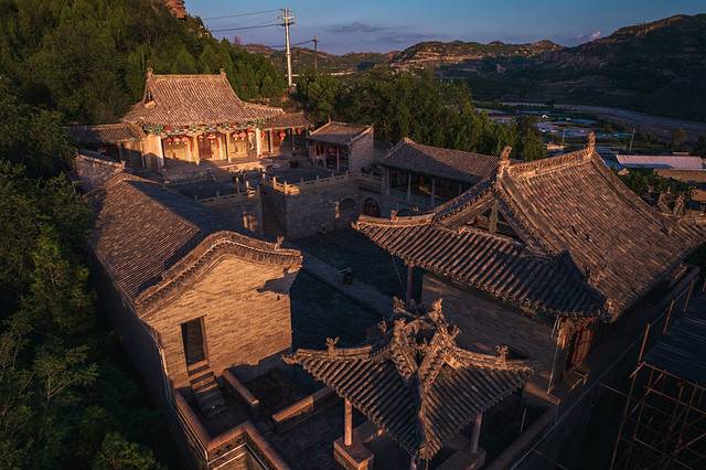 登上山环水抱的黑龙庙,整个古镇的全貌尽收眼底,脚下是一片具有黄土高原建筑特色的晋商老宅院,房檐连着房檐,店铺挨着店铺。走进了仔细观察,这些老字号和老房子上保留有明清风格的砖雕、木雕和石刻,深沉而厚重。