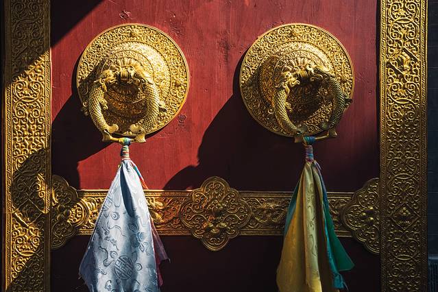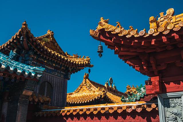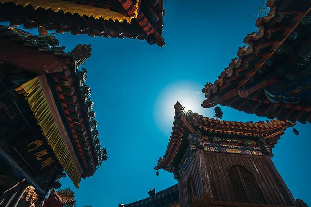 不过,时间有限的我们,也只能挑其中最精华且彼此距离比较近的寺庙来参观了。盘踞于灵鹫峰上的菩萨顶,是五台山最大的喇嘛寺院,创建于北魏孝文帝年间,历代曾多次重修。明永乐之后,藏传佛教信徒进驻五台山,方成为五台山黄庙之首。清朝康熙、乾隆曾数次朝拜五台山,并住在菩萨顶。