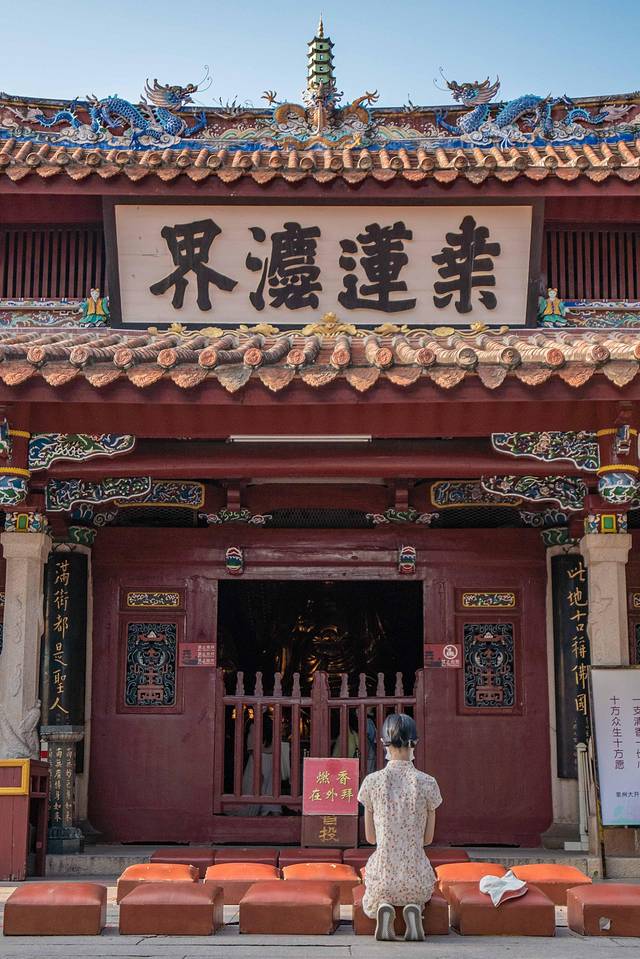 一扇寺门,向内是静心的古寺园林,向外是喧闹的西街世俗。香火与清茶,散发出了古城的味道;经文与南音,吟唱出了古城的音律。穿过西街东来西往的行人,清晨的开元寺多了些难有的清净。