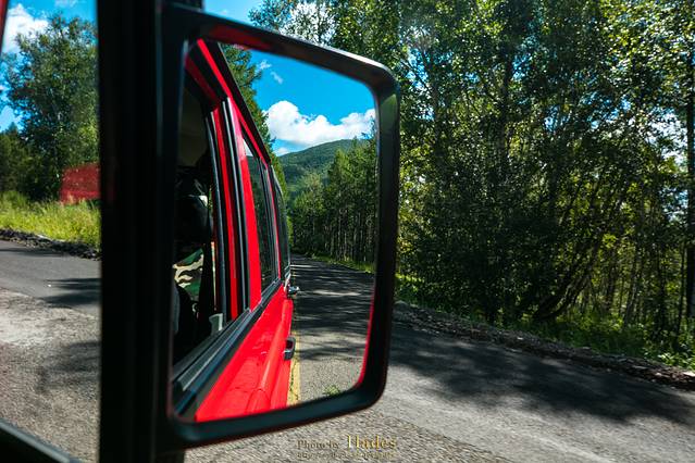 乘上景区的越野车,从山脚一路穿林而上,绿树掠过脸庞,云朵映在车窗,穿山越林的感觉刺激非常。