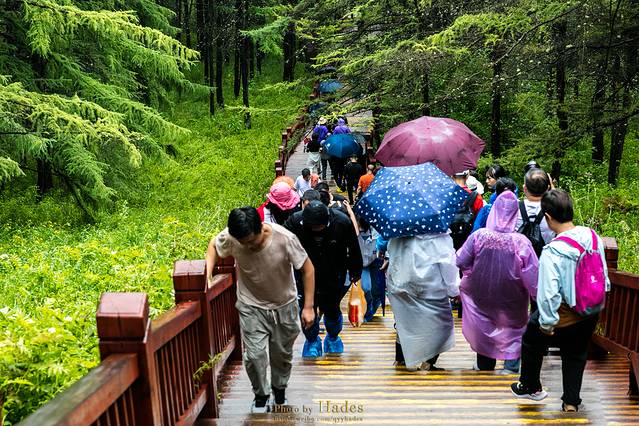 即使这般,也没有阻挡人们一睹天池风采的步伐,顶风冒雨而来,只为这一眼!不自来,不亲往,都难想阿尔山的多姿多彩!