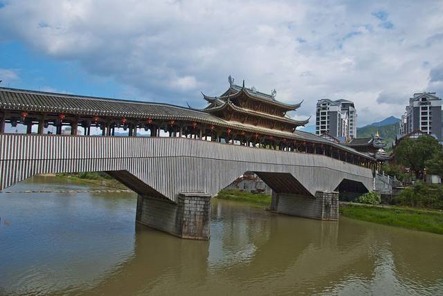 据不完全统计在我国的青山绿水中至今耸立着千余座风格各异的古廊桥,主要集中在浙闽边界一带,尤以福建的寿宁、屏南和浙江的景宁、泰顺、庆元为主。它们历尽沧桑,伫立了千百年,那古朴典雅的造型,实用科学的结构,粗犷而不失细腻的风格,构成一道道亮丽的风景线,使人为之动容,流连忘返。