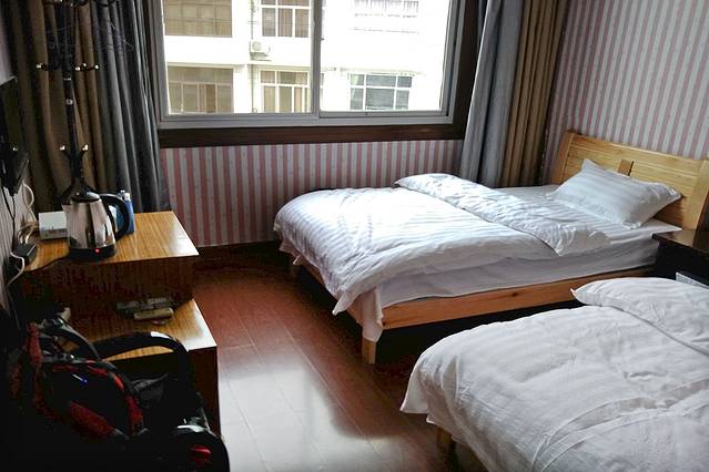 到泗溪镇入住到车站对面的古桥宾馆,宾馆是两位美女在打理,一进门就感觉很温馨清爽,房间不大很干净,特别是床上布草比较新无异味,单子都是新换过的。1.2米的两张床,桌、椅还有衣架,用着也挺方便。洗手间还不算小,设备都无损坏。在这样一个小镇70的价位,我已经很满意了。