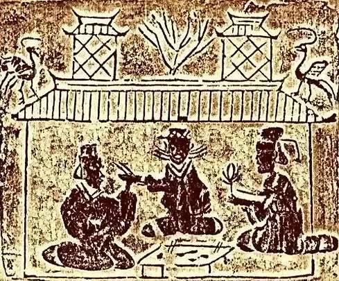 王侯们宴饮,自然不像平常人吃完喝完了事,照例还须乐舞助兴体现出一种贵族风度。在出土的汉代许多画像砖和画像石上,以及墓室壁画上,都描绘着一些规模很大的宴饮场景,其中乐舞百戏都是不可缺少的内容。