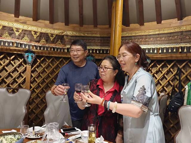 回赤峰接上从北京赶来的小雁,入住翁牛特旗镇。晚餐、卡拉OK.