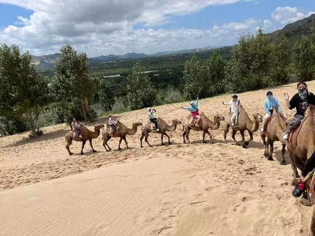 六十岁以上建议不要骑骆驼。在下边等骑骆驼的回来。