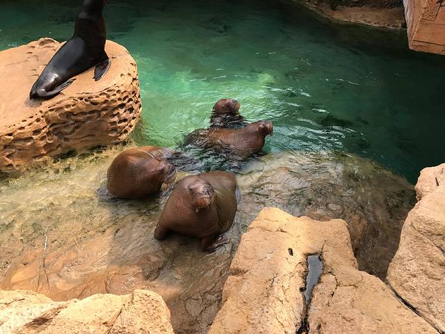 海象山,看海象海狮喂食,喷水池玩水,碰碰车。