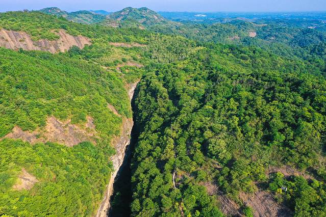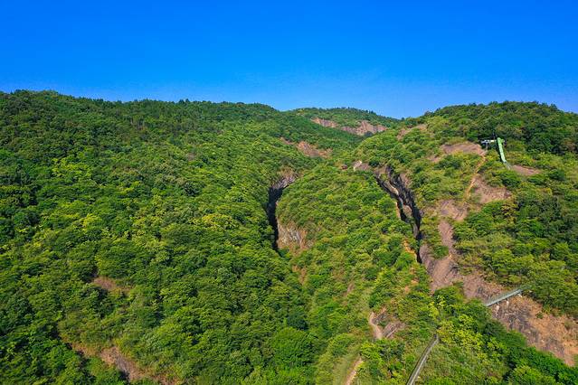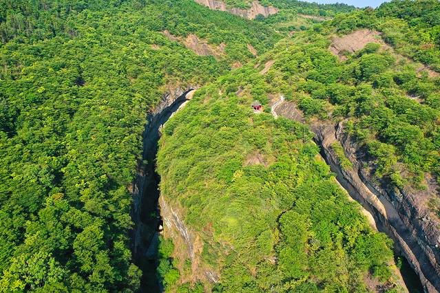 自驾大别山风景道来到了 安徽 六安 皖西大裂谷景区,从空中看下去,,景区岩石犹如一座高大的山脉被神斧劈成两半似的,两侧峭壁撑天对峙,中间约有一条2公里长的蜿蜒石阶。游客可以从这里走上石阶,在这里可以窥探大自然的鬼斧神工,不失为一种最大的快乐。