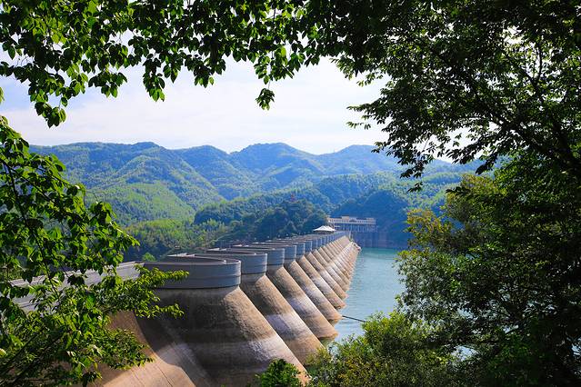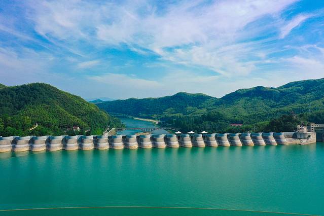 佛子岭水库位于 六安 市 霍山县 境内,坝址在城西17公里处,号称“新 中国 第一坝”。和我们平常看到的水库大坝不同之处在于,大坝最特色的设计就是拱形的设计。外观气势磅礴,水库水清澈,从空中看下去,水库犹如蓝宝石一样的颜色。