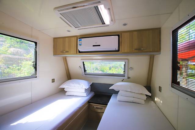 营地目前共有9辆拖挂式房车,针对不同客户群体,配备不同房型,包括豪华间、上下铺、标准间、情侣间,每辆房车配备独立小院可供游客自助烧烤,而且是免费提供烧烤器具,这里离大别山风景道很近,是自驾旅行途中的休息地,傍晚和家人一起坐在房车前烧烤,吃美食,喝茶谈心,晚上看天空闪闪发亮的星星。