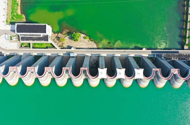 水库从1952年动工到1954年建成,也是淮河治理工程的重要组成部分,当初建设大坝的时候,可以说攻克了重重难关,老一辈水利专家在摸索中前进,边学边干,最终建成新 中国 第一个自行设计、施工的钢筋混凝土连拱坝。