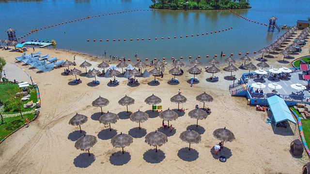 如果是东北人的第二故乡是三亚的话,那么在去不了三亚的时候,也可以来海龙湖的沙滩享受阳光和碧波。