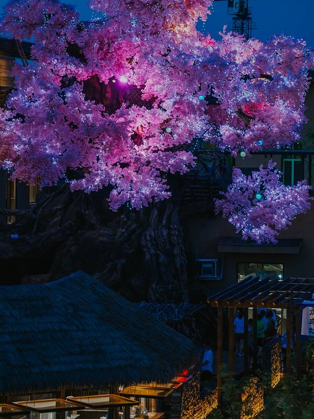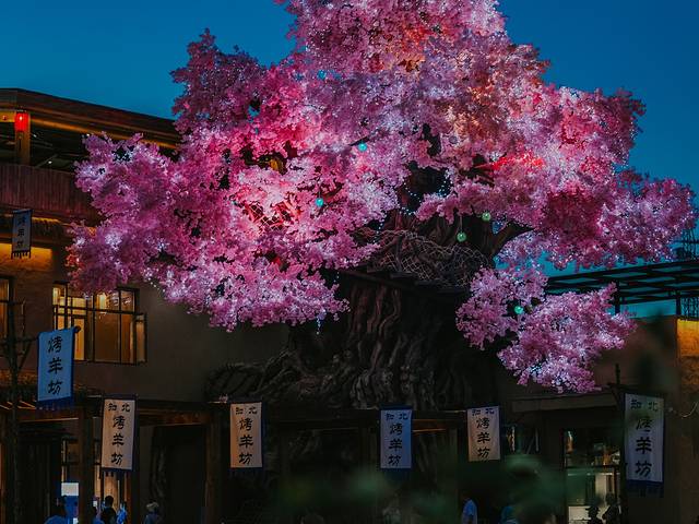 知北村里最显眼的地方就是这个粉色桃花树,特别是夜间灯光亮起,整颗粉树美轮美奂,很像动画中会出现的场景。而这里,是羊坊。