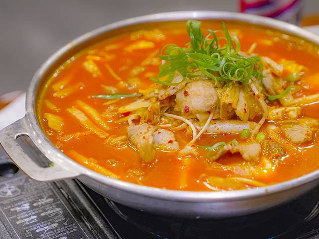 辣白菜白肉锅则更像朝鲜族料理和东北菜的融合创新,我喜欢盛一碗煮开的咸鲜辣白菜汤细细品味。