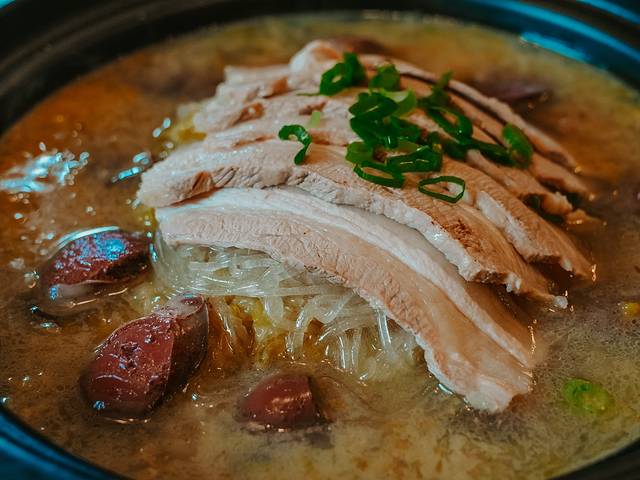 经典的酸菜白肉炖粉条。我尤爱里面的酸菜和粉条,北方的酸菜拿来做汤是真的很有滋味。