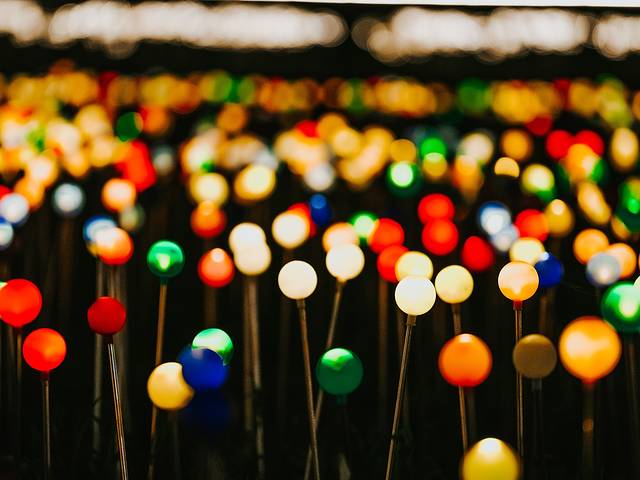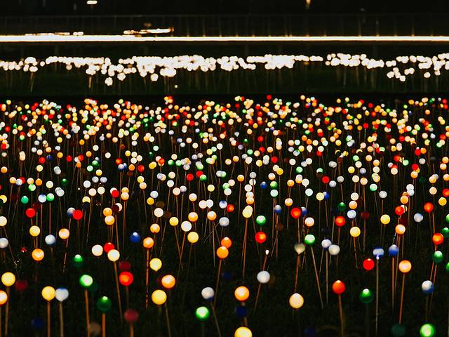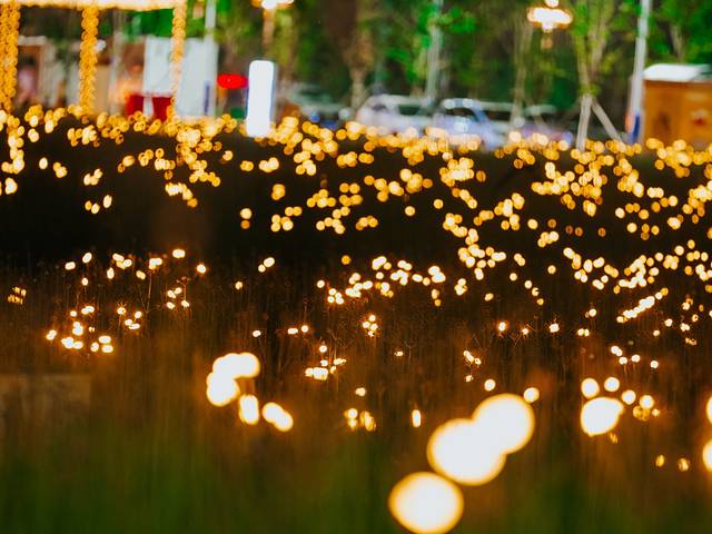 城市的夜里没有萤火虫,但是可以做“人造萤火虫”。暖黄色的光点在微微摇曳生姿,远远一看就好像密集的萤火虫在翩翩起舞。