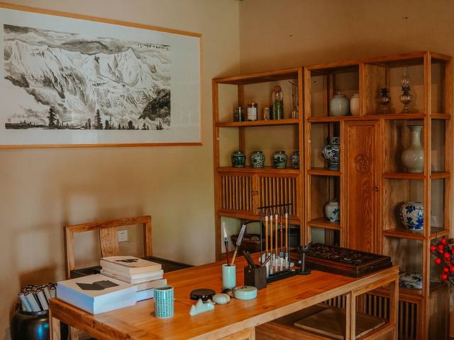 而房间里的陈设也是比想象中好太多,住的套房里还有专门的书房,笔墨纸砚一应俱全。