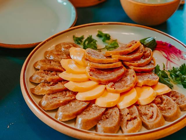 猪血肠,猪血糕,猪肉皮冻,再到最后的酸菜白肉炖粉条。