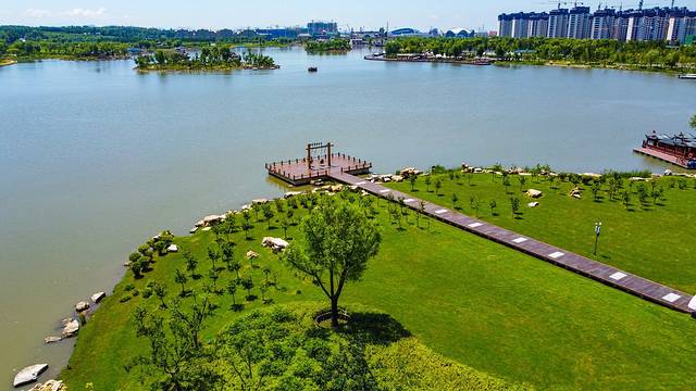 海龙湖是梅河口的人工湖,这里采用了海绵城市的设计理念,形成了“一湖、两廊、三岛、四桥、七区”的空间格局。