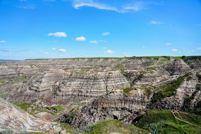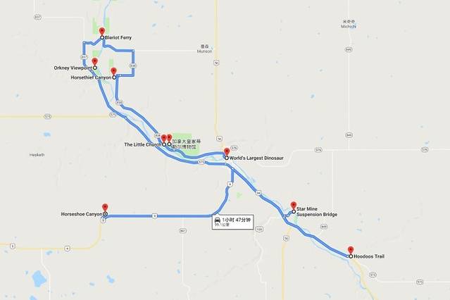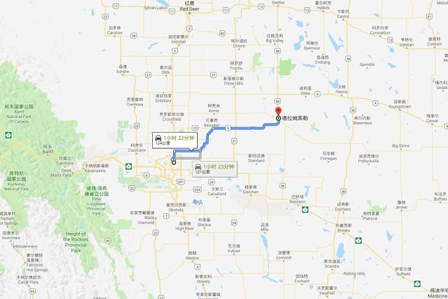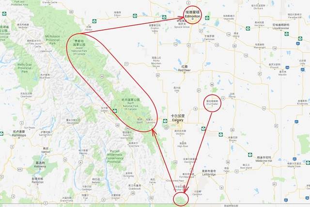 介绍下德兰赫勒山谷(Drumheller Valley)经典的公路之旅的玩法,全长185公里: