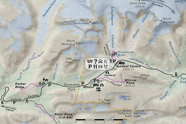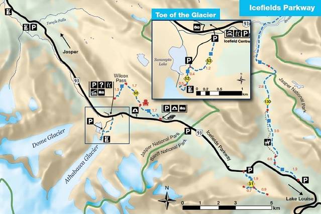 有了93A公路,游客可以轻松接近山脉的北面,这一地区因冰碛、卡维尔牧场、漫山遍野的鲜花和壮丽的天使冰川(Angel Glacier)而出名。