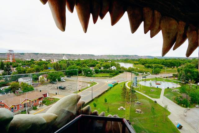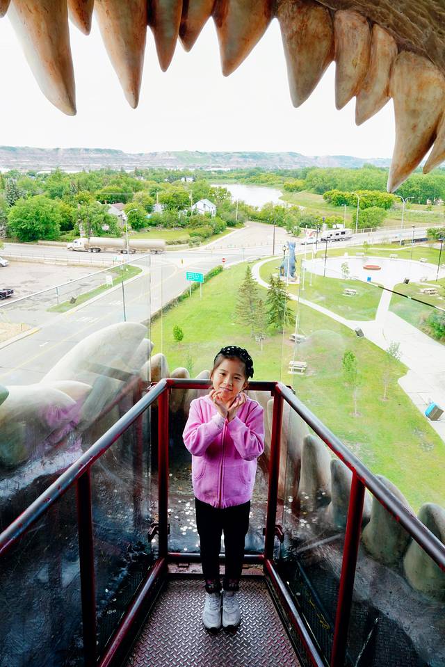 恐龙的嘴里是一个可以容纳12个人的树脂玻璃观景台,可以居高临下俯瞰德兰赫勒,到达观景台需要在恐龙肚子里攀登106级阶梯。观景台全年开放,非常适合小朋友进去一探究竟,家庭票的价格是10.5加元。