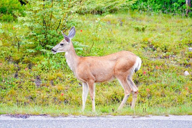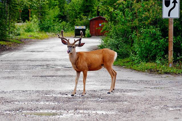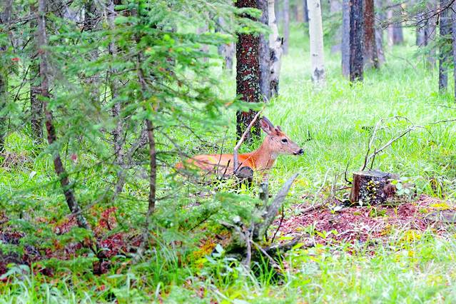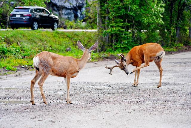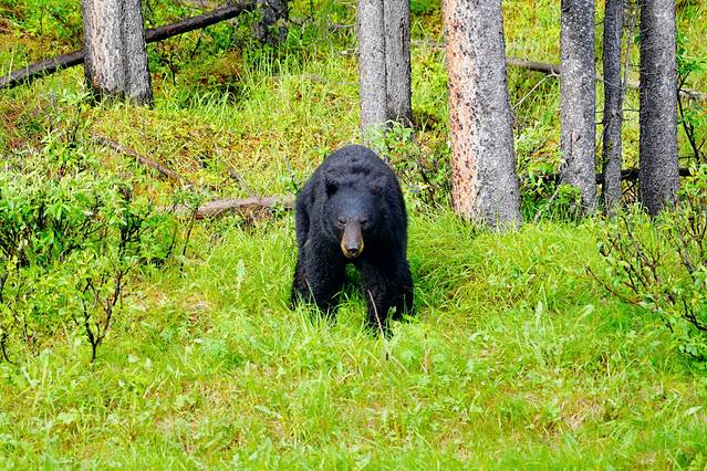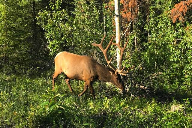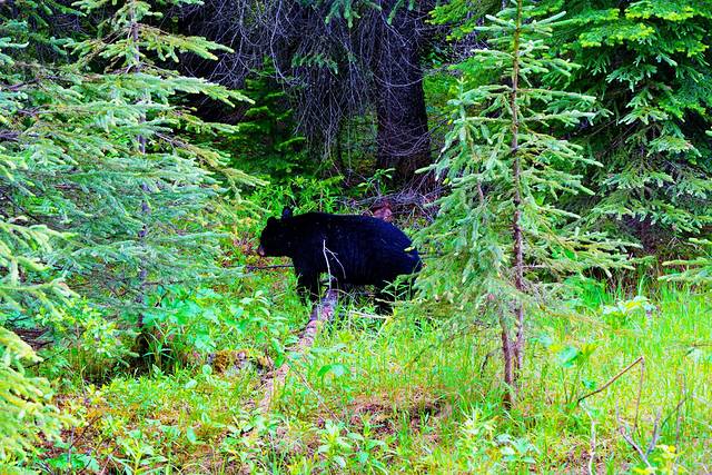 艾伯塔的行程已历经10天,从南到北一路走来,我们既经历了在沃特顿湖意外撞见棕熊的紧张,又感受了班夫镇与麋鹿、大角羊不期而遇的惊喜;我们既为幽鹤山谷黑熊母女的重逢感动,又被冰原大道黑熊、棕熊俩萌宝的憨态着迷,可以说野生动物的相伴贯穿于我们旅程的始终。虽说在落基山地区只要选对时间(清晨或傍晚)+一点点运气,遇见动物不是什么难事,但若要论动物出现的密集程度,玛琳山谷的玛琳湖路(Maligne Lake Road)绝对是No.1。去往玛琳湖的途中,短短40分钟我们就看到了1头麋鹿、3头骡鹿和5头熊。