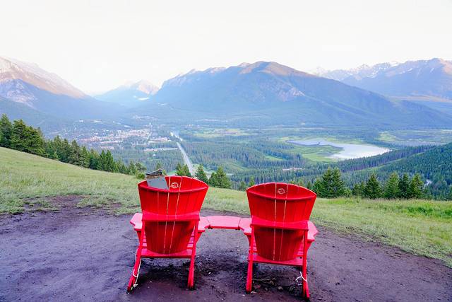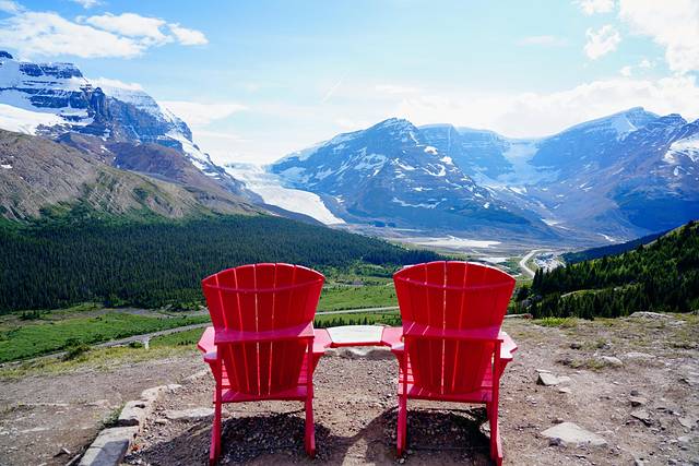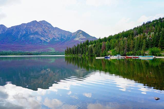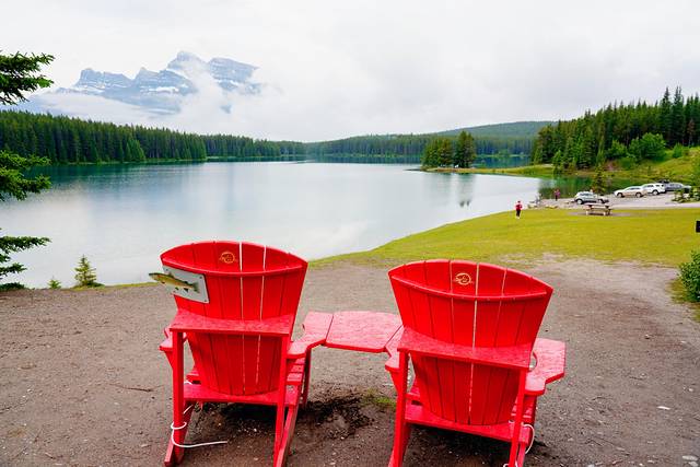金字塔湖和派翠西亚湖(Pyramid and Patricia Lakes)紧挨着,从贾斯珀镇往北行驶约5-7公里(10-15分钟)就能抵达,沿途有多个停车场。这里最有代表性的除了金字塔山(Pyramid Mountain),还有精致的红椅子。清晨的时候晨雾萦绕山间,是拍摄群山倒影的最佳时间。