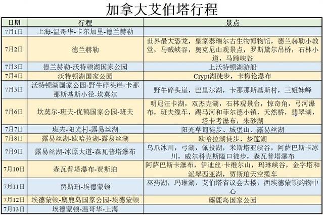 旅途中遗憾总是与收获相伴,这次唯一的缺憾就是天气,虽不能说糟糕,但也算不上给力。在山区旅行,天气的重要性不言而喻,毕竟落基山里的那些个湖泊要出彩还是有赖于阳光的帮忙。回来后持续关注了一段时间艾伯塔的天气,如果下次再去我可能会选择七月中下旬到八月中上旬这个时间段。当然,老天爷的脾气咱没法提前揣摩,即使遇到了坏天气也别影响心情,不完美本身就是旅行的一部分。