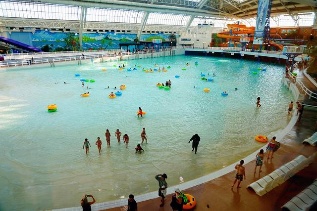 水上乐园有世界上最大的人造波浪池,产生的海浪最高可达2米。园内共有17条滑水道,分Beginner、Intermediate、Advanced、Extreme四个级别,无论你的年龄、胆量如何,总有一条适合你。