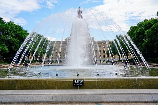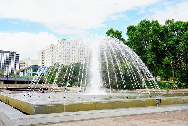 步入大楼前的广场,最吸睛的是一个大型喷泉,它是专门为纪念英国女王伊丽莎白二世对加拿大的首次正式访问而建造的。