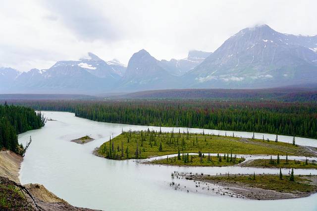 前往峡谷的路上可以先去玛琳瞭望台(Maligne Lookout)转一圈,这儿是俯瞰峡谷周边美景的制高点。