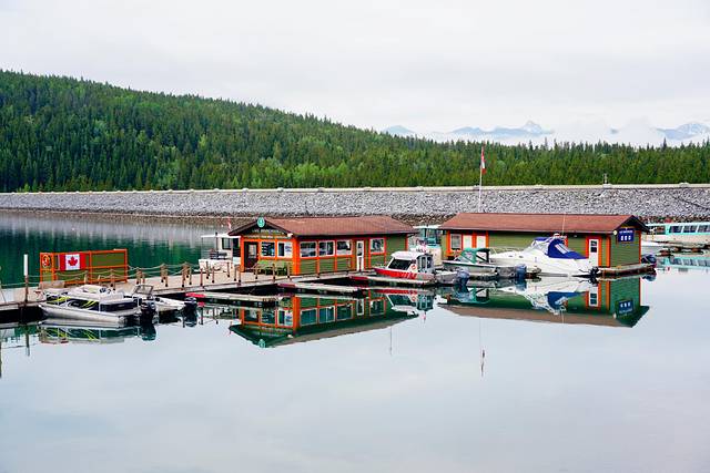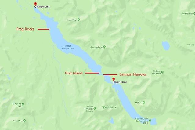 自驾只能到达湖北面的游客中心和游船码头。由于玛琳湖的湖水是从湖南端的玛琳河(Maligne River)流入,因此冰川的沉积物和岩石粉也都集中在湖的南面,想拍摄深绿色的玛琳湖就要前往湖南端的精灵岛。精灵岛无陆路可以到达,与外界联系的唯一交通工具就是船。