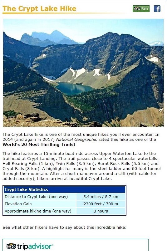1、沃特顿湖国家公园【克里普特湖步道(The Crypt Lake Hike)】