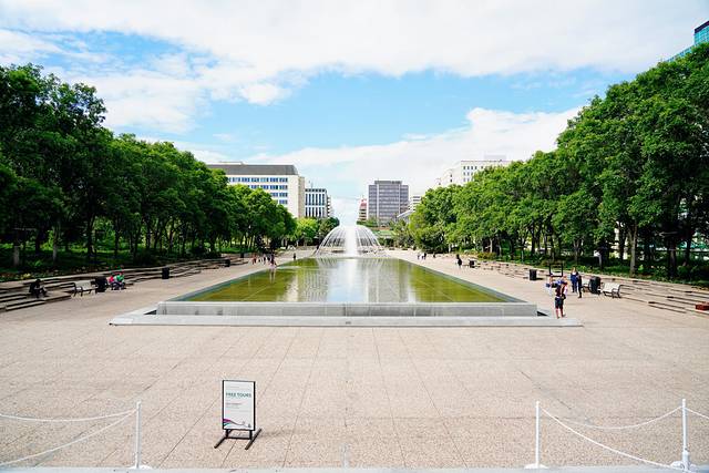 接下来是一个超大的长方形水池,可能是在落基山区呆久了的缘故,每到有水的地方,都会条件反射似地对水中的倒影着迷。