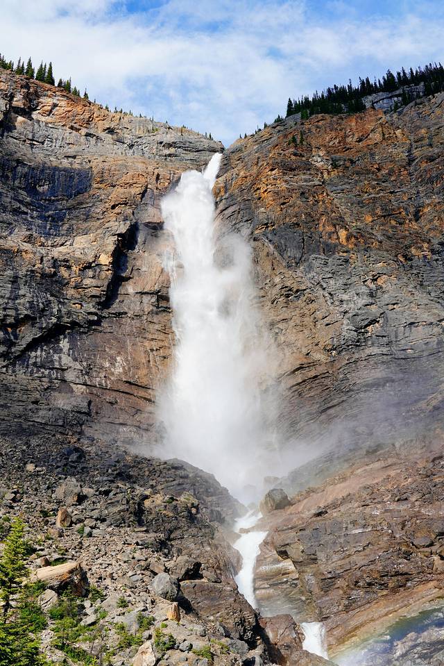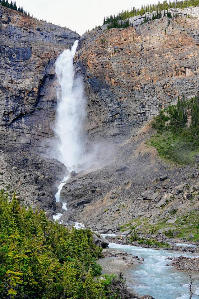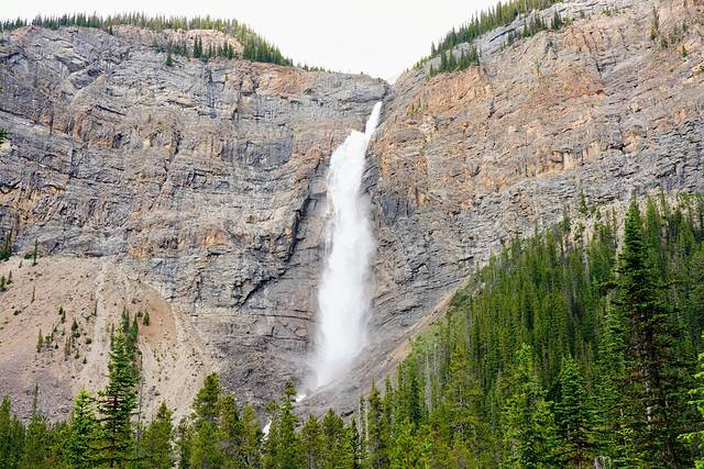 左边的峭壁下方是玛琳峡谷第三座桥所在的位置。由于被茂密的松树林遮盖,再加上瀑布流水的相伴,所以夏天峡谷里非常凉爽。