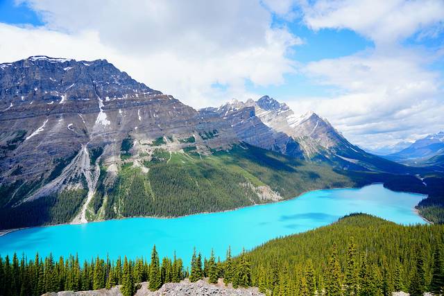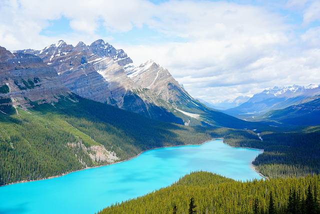 露易丝湖(Lake Louise)、梦莲湖(Moraine Lake)、佩投湖(Peyto Lake)、玛琳湖(Maligne Lake)、翡翠湖(Emerald Lake)、欧哈拉湖(Lake O’Hara)更是摄影师镜头下的宠儿,她们靓丽的身影在无数的网站、杂志上都曾出现过。