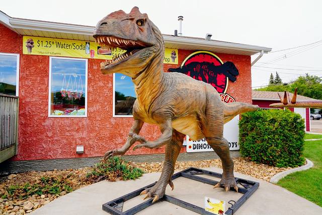 在德兰赫勒游客信息中心的边上,醒目地矗立着一只霸王龙,它就是著名的世界最大恐龙(World's Largest Dinosaur)。