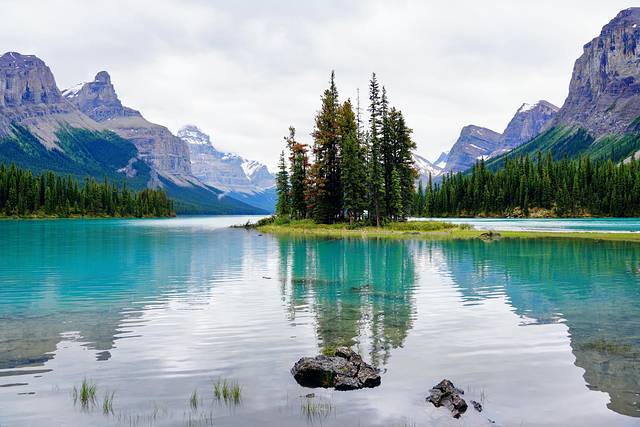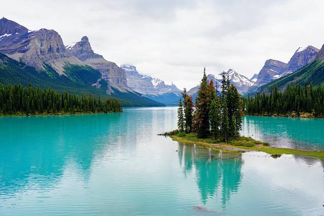 玛琳湖(Maligne Lake)是落基山脉中最大的天然冰川湖泊,也被认为是落基山脉中最美丽的湖。几乎所有来贾斯珀的游客都会选择泛舟玛琳湖,前往湖中的精灵岛(Spirit Island),去亲身体验这个号称世界上最适合拍照的地方。