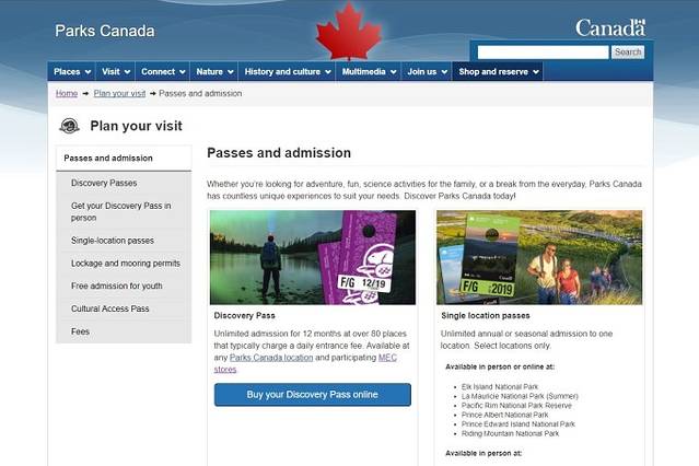 年票也分两种:一种是Discovery Pass,可以自购买之日起一年内无限次出入加拿大80多个国家公园、国家历史遗址和国家海洋保护区;另一种是单个公园的年票,只针对某个特定公园有效。每种年票又分家庭票/团体票(以一辆车为单位,最多七个人)和单人票两种,可以根据人数多少和优惠幅度来选择。